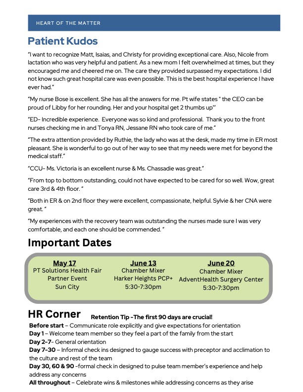 These are the two printed Nursing Newsletters we have published so far. They are called our “Heart of the Matter” Newsletters as they feature nurses and other non-physician staff in the hospital.